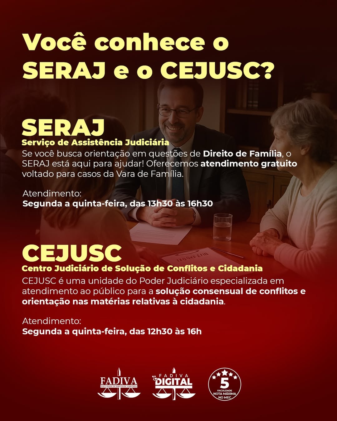 Você sabia que a FADIVA oferece atendimento gratuito à comunidade por meio do SERAJ e do CEJUSC?