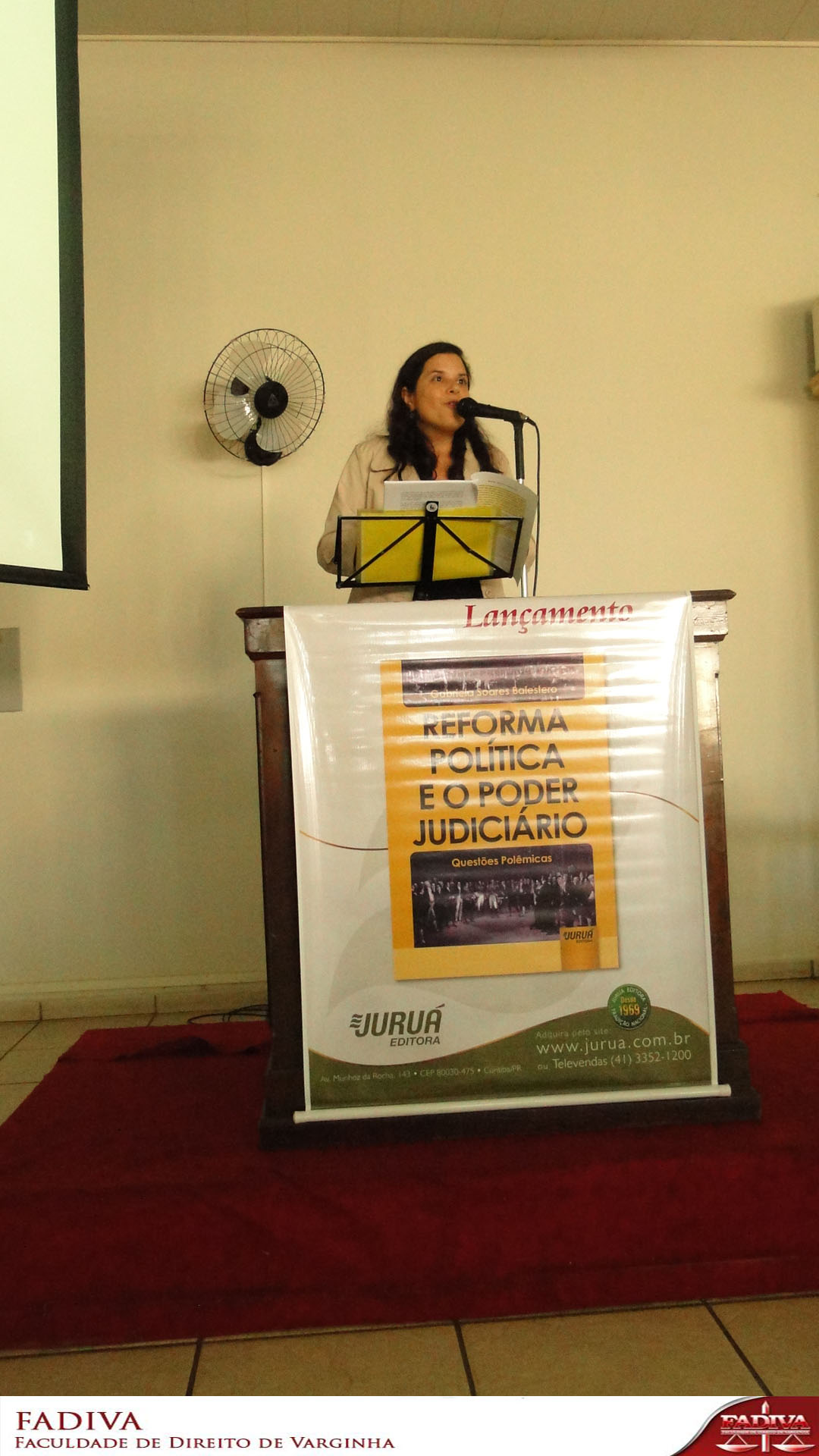 "Em nome de toda instituição, agradeço a Drª Gabriela, por abrir nossas atividades da Semana do Advogado e, ainda, aproveito para informar que outras atividades serão realizadas durante esta semana", informou a Vice-Presidente da Fundação Educacional de Varginha, Junia Bemfica Guimarães Cornelio, quem deu as boas vindas aos alunos, convidados e, claro, à palestrante.