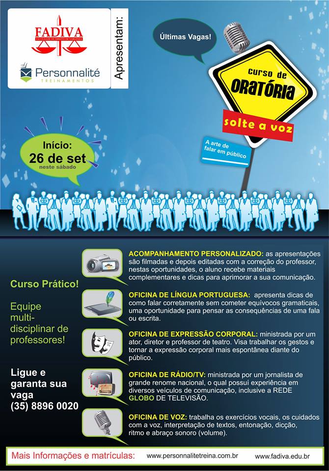 23/09 - Curso de Oratória com desconto exclusivo para alunos da FADIVA!