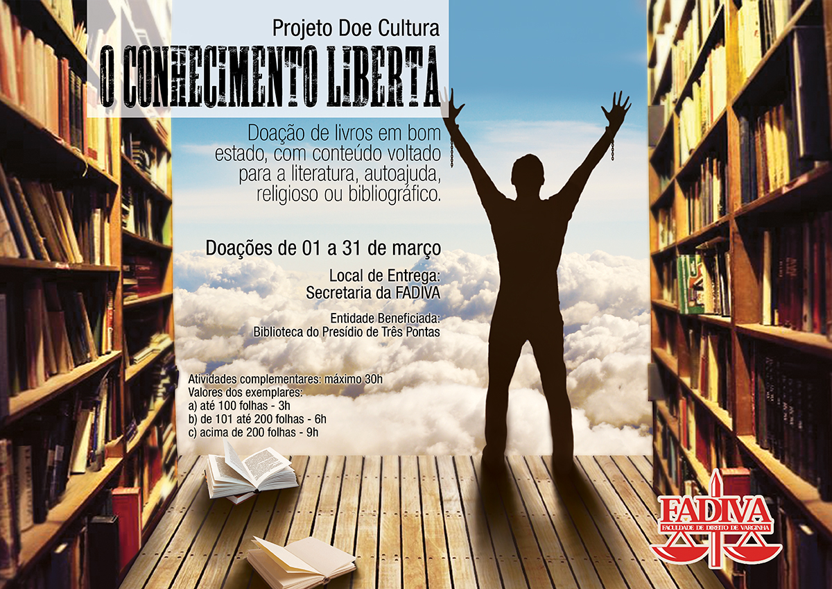 Os alunos podem efetuar as doações na Secretaria da FADIVA, onde haverá uma lista para comprovação de atividades complementares.