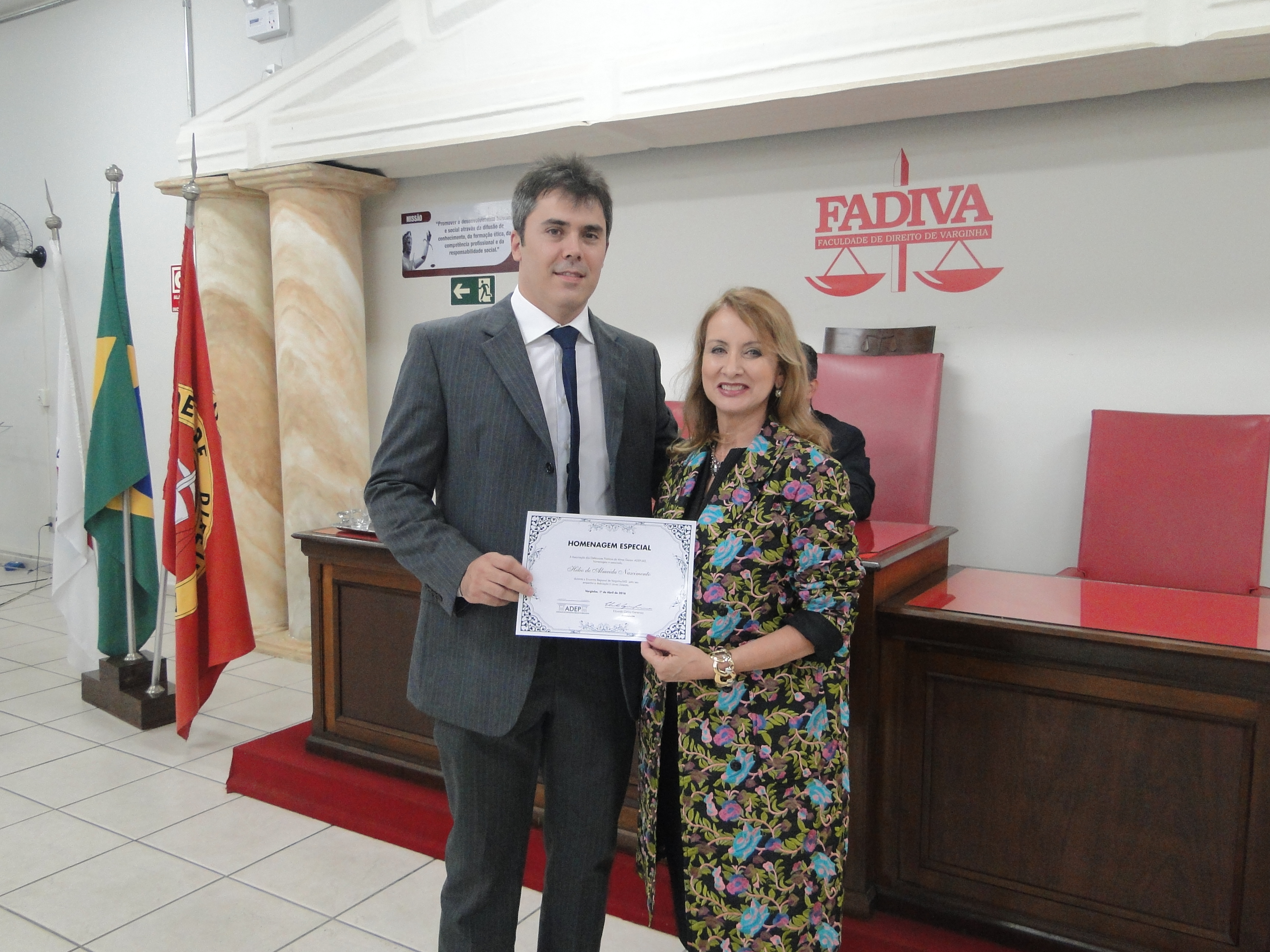 Ainda, alguns Defensores Públicos foram homenageados, dentre eles, a Drª Diléa Reis Chaves, egressa da FADIVA (ver foto).