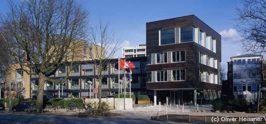 Fotos: professor Fernando no desembarque em Hamburg, Alemanha e o prédio Max Planck Institute for Comparative and International Private Law, onde o mesmo realizará seus estudos.