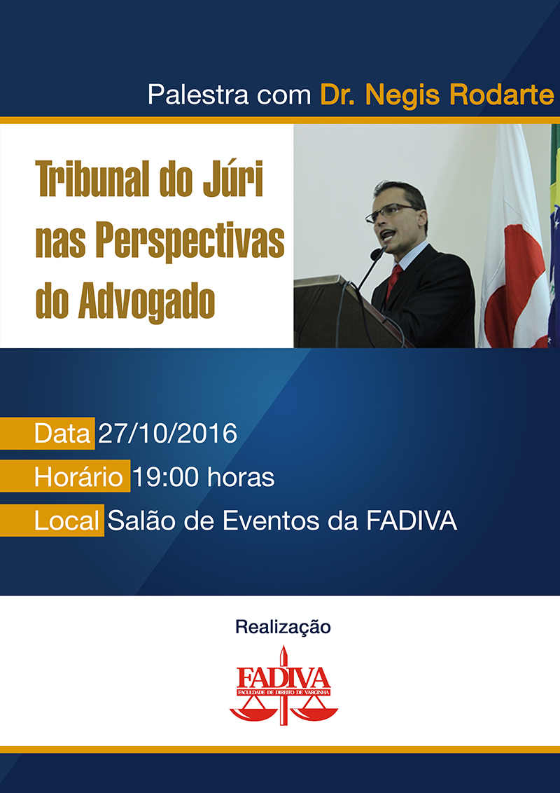 20/10 - Palestra "Tribunal do Júri nas Perspectivas do Advogado" com Dr. Negis Rodarte
