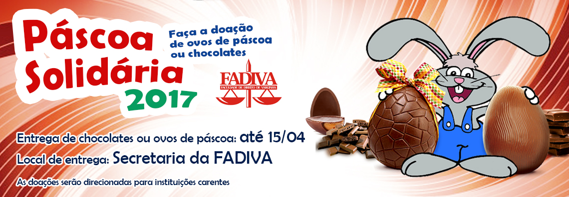 Mais uma vez, a FADIVA conta com a colaboração de seus alunos para que o Projeto Páscoa Solidária seja um sucesso!