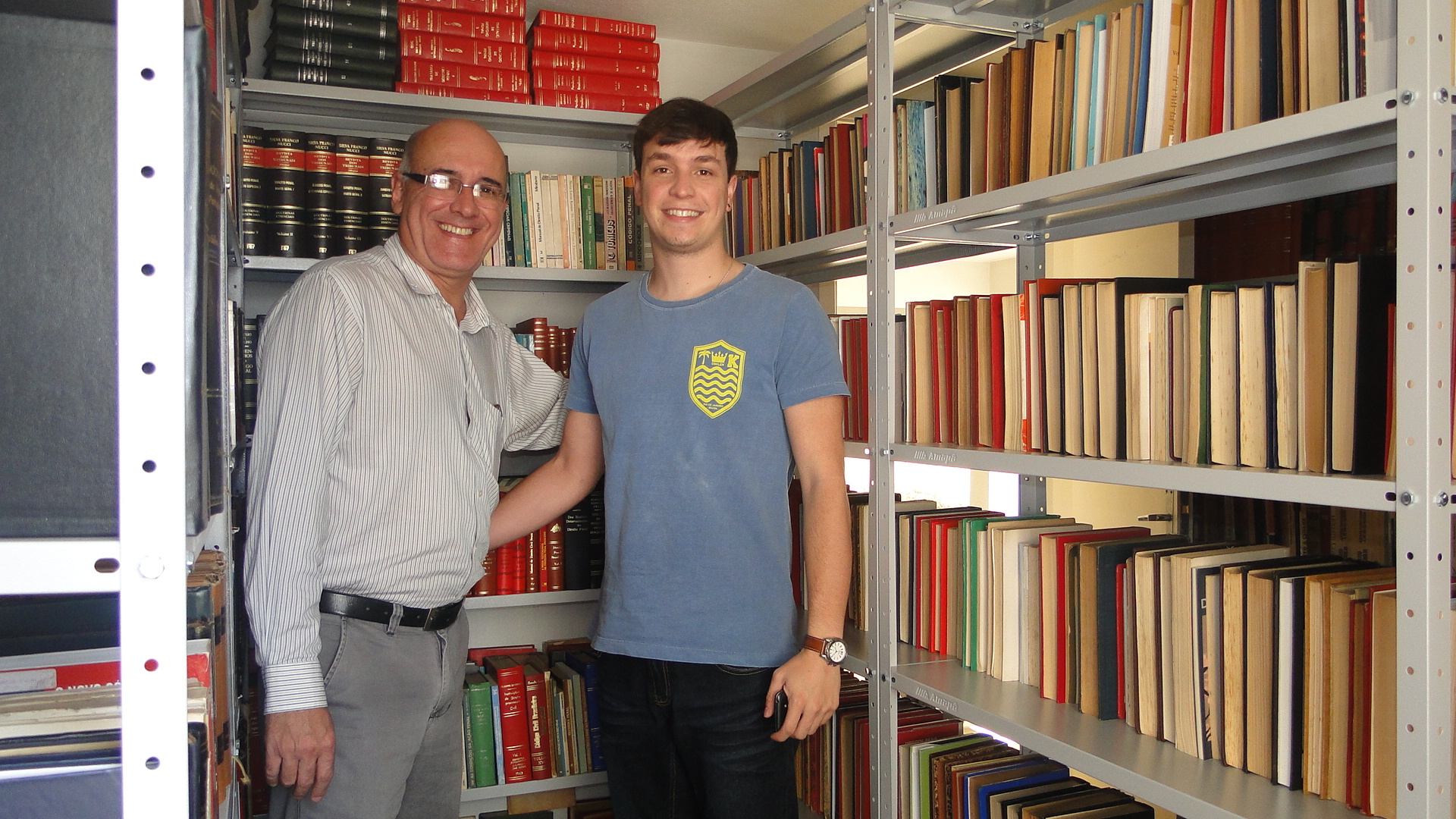 Foto:Biblioteca Desembargador José Antonio Weiss de Andrade, com Dr. Marco Aurélio da Costa Bemfica e o colaborador do SERAJ, Samuel Antonio Bemfica.