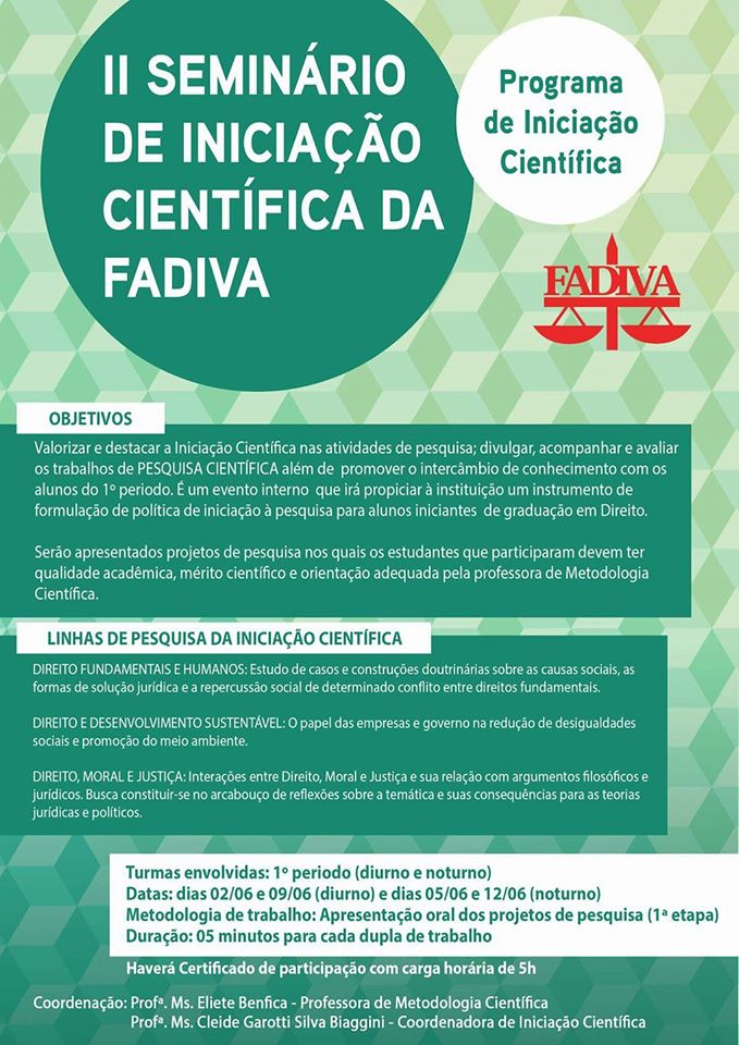 17/05/17 - II SEMINÁRIO DE INICIAÇÃO CIENTÍFICA DA FADIVA.
