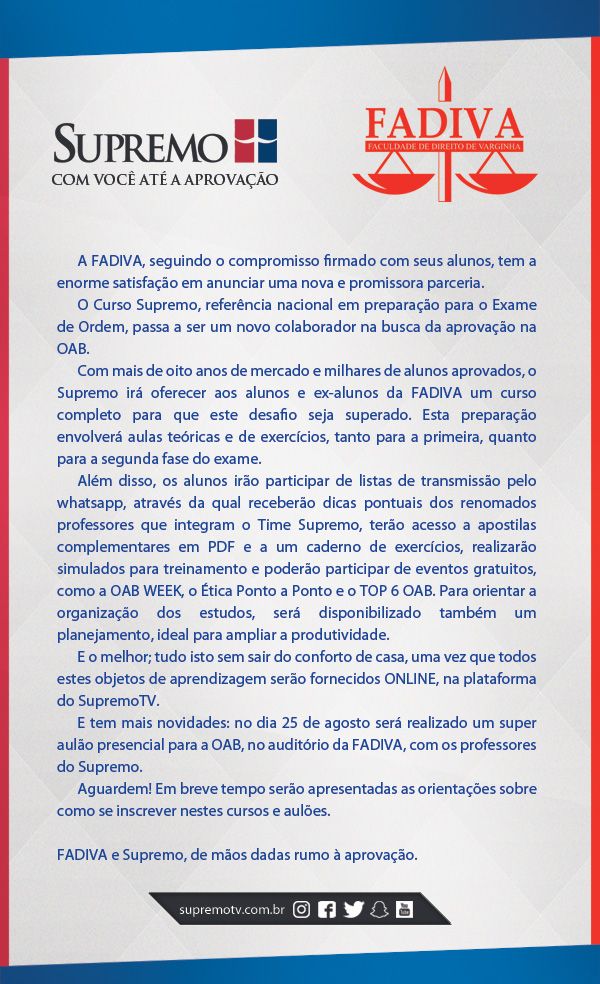 PARCERIA DA FADIVA COM CURSO SUPREMO