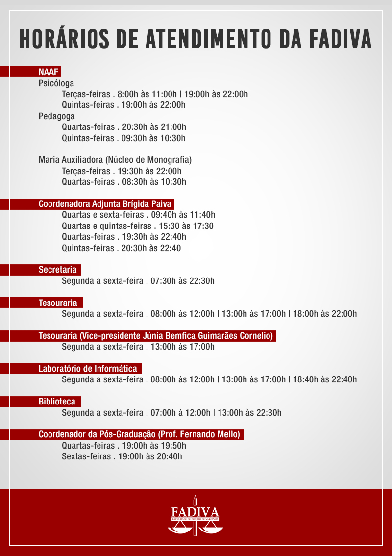 Há 59 anos, a FADIVA forma mais do que profissionais do Direito — forma vozes que fazem a diferença, mentes que questionam e líderes que... Leia mais...
