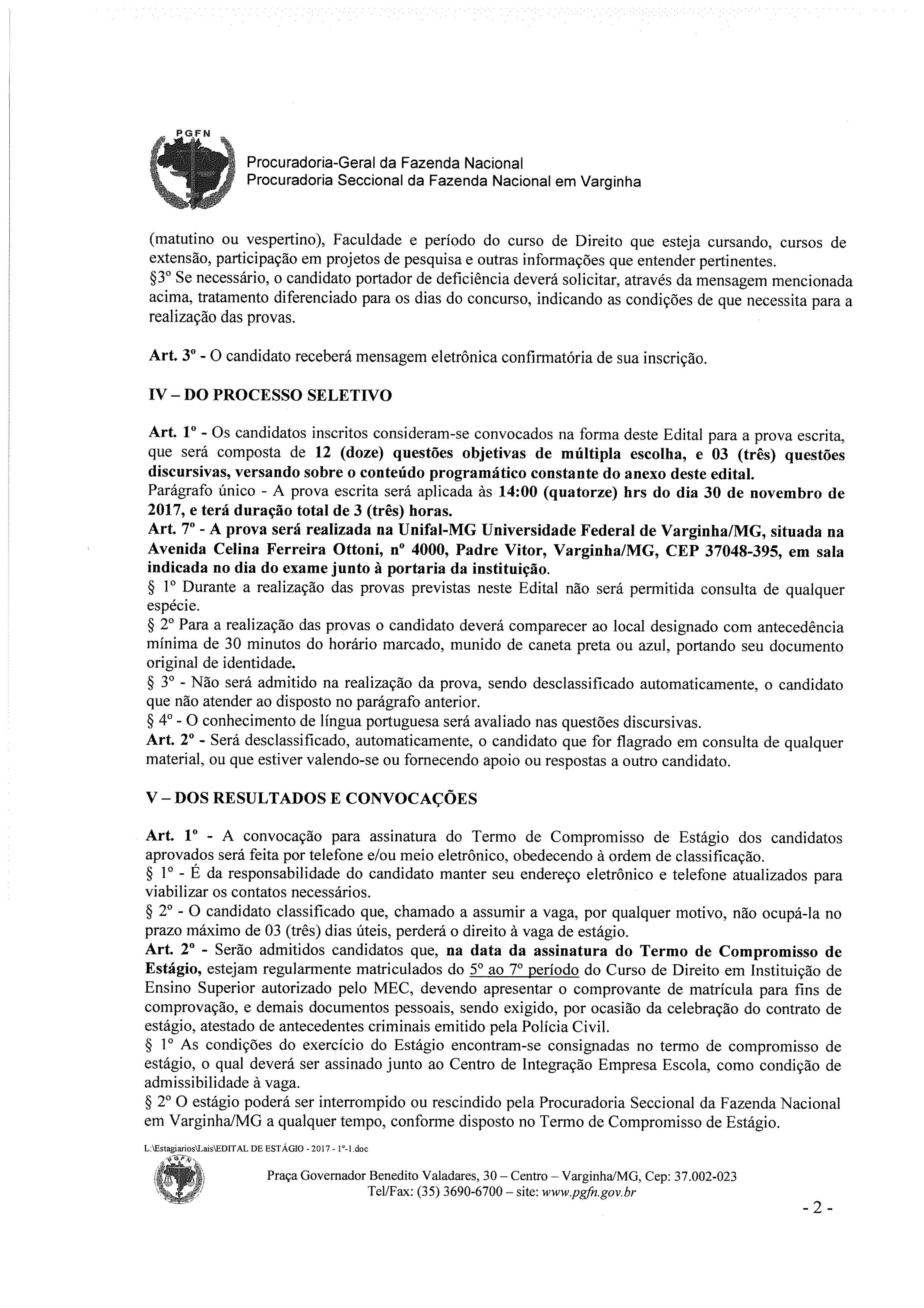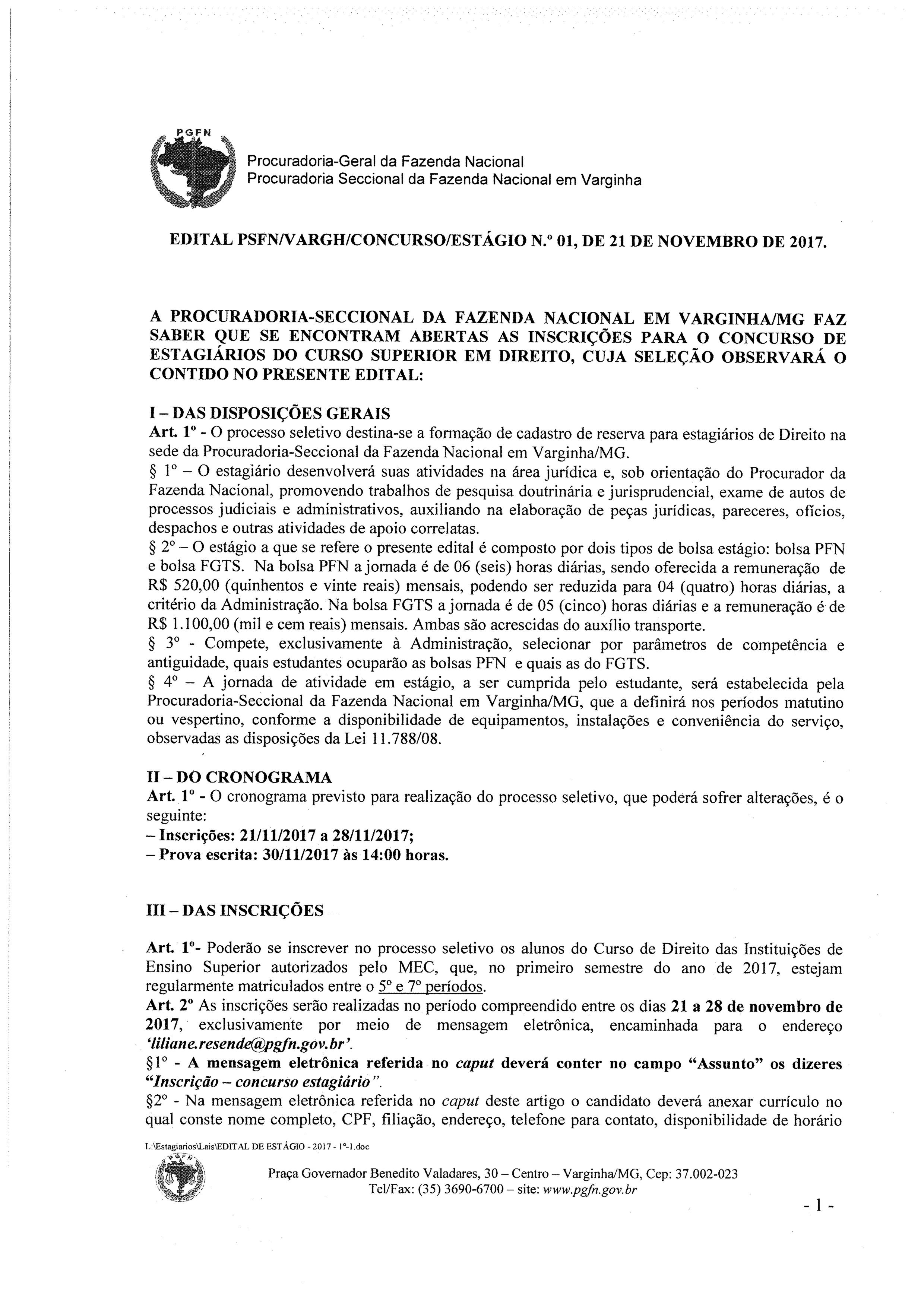 SELEÇÃO DE ESTAGIÁRIOS PARA PROCURADORIA GERAL DA FAZENDA NACIONAL
